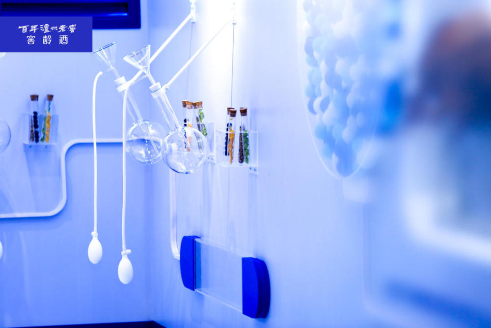 走进微生物研究室,可以零距离探秘白酒酿造的微观世界,这些悬空的、变化莫测的、被还原成卡通模样的有益微生物菌群都是决定酒质好坏的关键——一瓶好酒的密码,就是窖泥中富集的有益微生物越多,酒质越好。